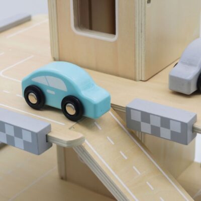 Hodí sa na autá zahrnuté v súprave, ktoré môže dieťa pomocou červeného gombíka dopraviť na vrch parkoviska.